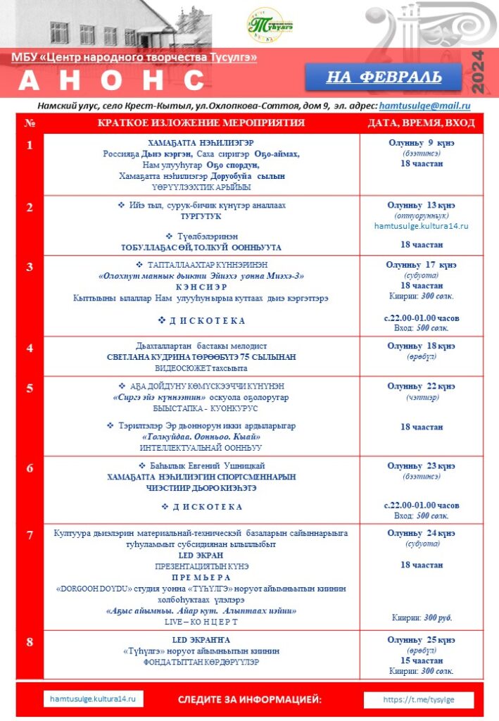 • КЛУБНЫЕ ФОРМИРОВАНИЯ МБУ «ЦЕНТР НАРОДНОГО ТВОРЧЕСТВА ТУСУЛГЭ»