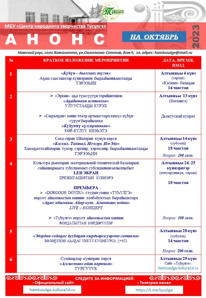 АНОНС на октябрь 2023г