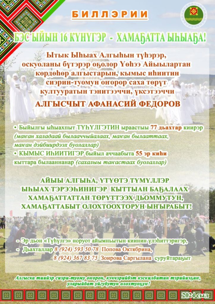 БЭС ЫЙЫН 16 КҮНҮГЭР — ХАМАҔАТТА ЫҺЫАҔА!