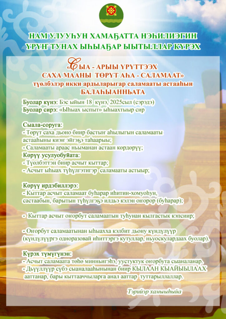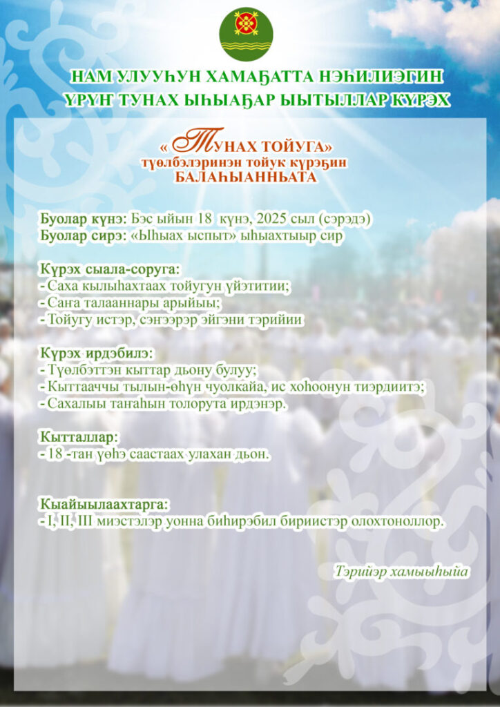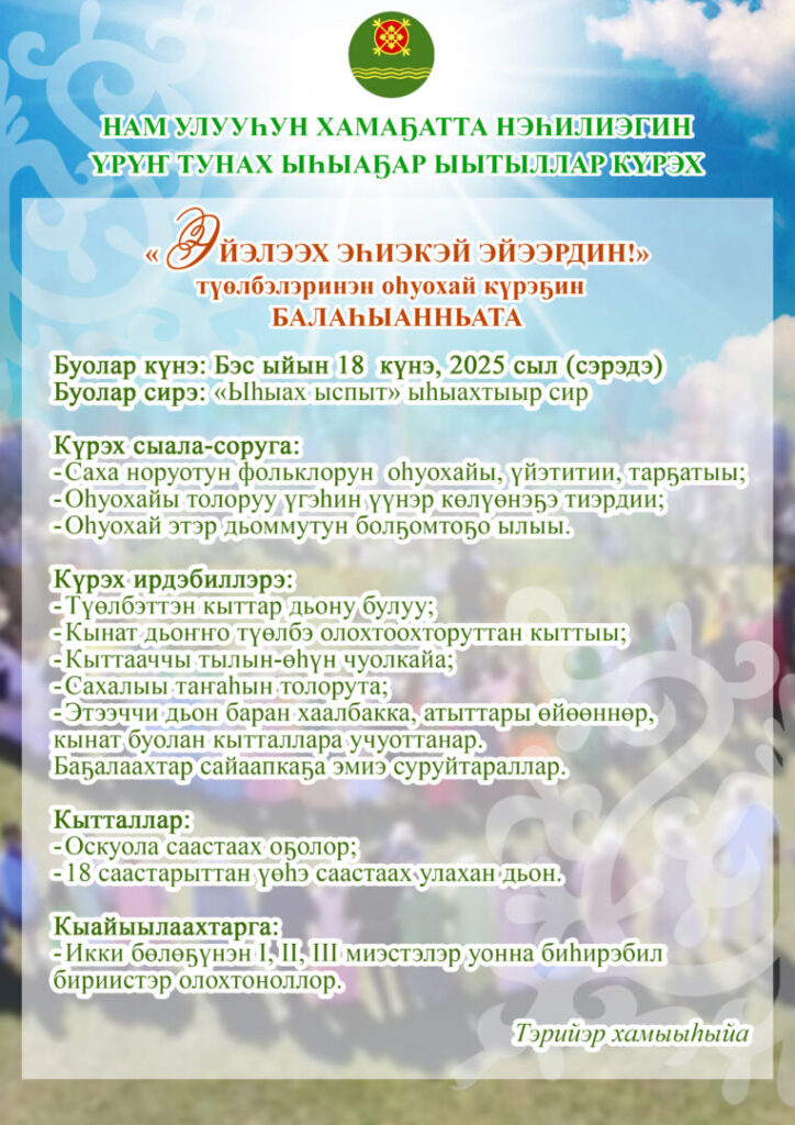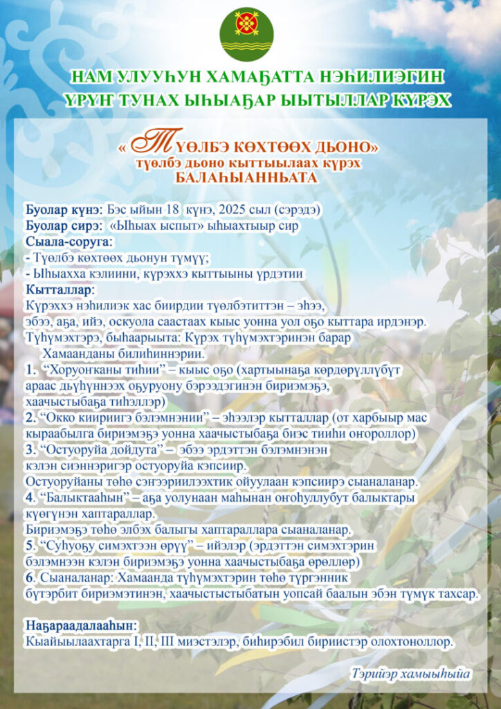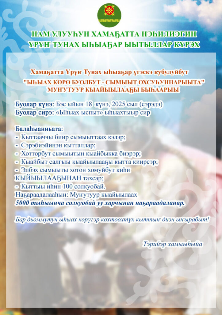НАМ УЛУУҺУН ХАМАҔАТТА НЭҺИЛИЭГИН ҮРҮҤ ТУНАХ ЫҺЫАҔАР ЫЫТЫЛЛАР КҮРЭХТЭРИН УОННА КӨРҮҮЛЭРИН БАЛАҺЫАННЬАЛАРА